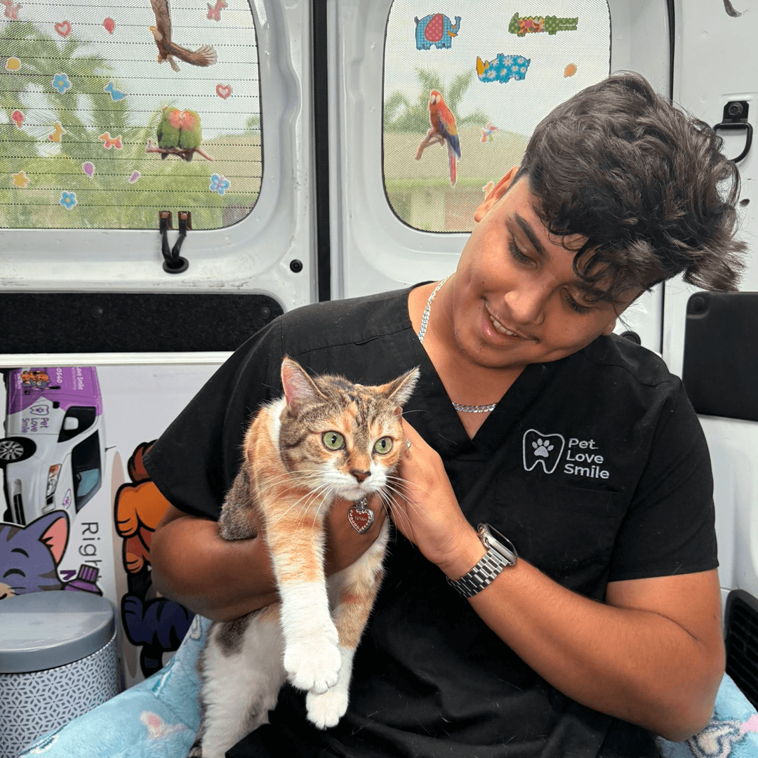 Beatriz Santos, our Pet Technician Director, founded Pet Love Smile with the mission of providing safe and anesthesia-free dental cleanings for pets. With over 5 years of experience in the pet care industry, she leads our dedicated team with passion, skill, and a true love for animals.